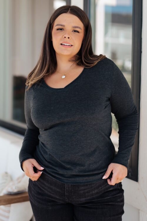 Alpine Raw Edge Long Sleeve Tee in Charcoal