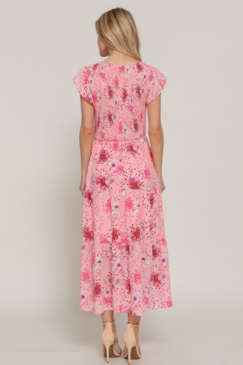 Romantic and breezy, this ruffle sleeve smocked floral print dress captures effortless femininity with every detail. Featuring a classic crew neckline and soft ruffle sleeves, it offers a charming, flowy silhouette. The smocked bodice creates a flattering fit through the waist, while the tiered skirt adds movement and grace. Crafted from lightweight polyester, it’s perfect for warm-weather outings, garden parties, or casual daytime events. The floral print enhances its delicate appeal, making this dress a standout in any seasonal wardrobe.
