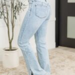 Elevate your denim game with our Alexis High Rise Control Top Wide Slit Slim Bootcut Jeans. Featuring Tummy Control Tech for a flattering fit, a light wash for a fresh look, and a slim bootcut silhouette perfect for pairing with your favorite boots. Get ready to turn heads with western-style flair and finished slit hem detail.