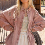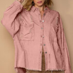 The Button Down Raw Hem Distressed Shacket is a versatile and edgy piece that combines the style of a shirt with the functionality of a jacket. The raw hem and distressed detailing give it a rugged and worn-in look for added character. With a button-down front, this shacket can be worn open as a lightweight layer or closed as a standalone top. The combination of a shirt and jacket makes it perfect for transitional weather and layering over your favorite outfits. Pair it with jeans and boots for a casual and on-trend ensemble. Elevate your streetwear style with this cool and fashion-forward distressed shacket.